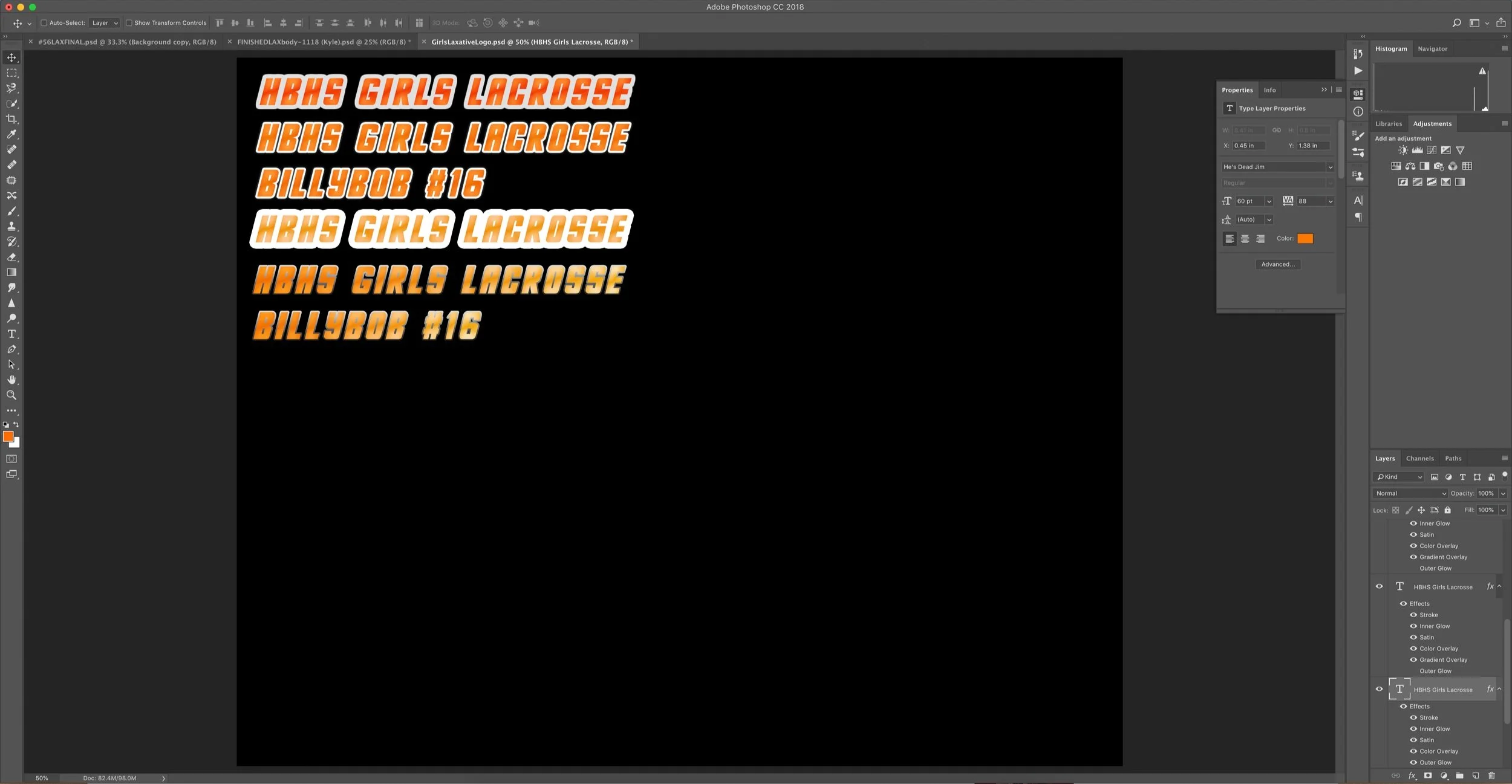 Creating possible texts to use in the final collage product for Girls Lacrosse